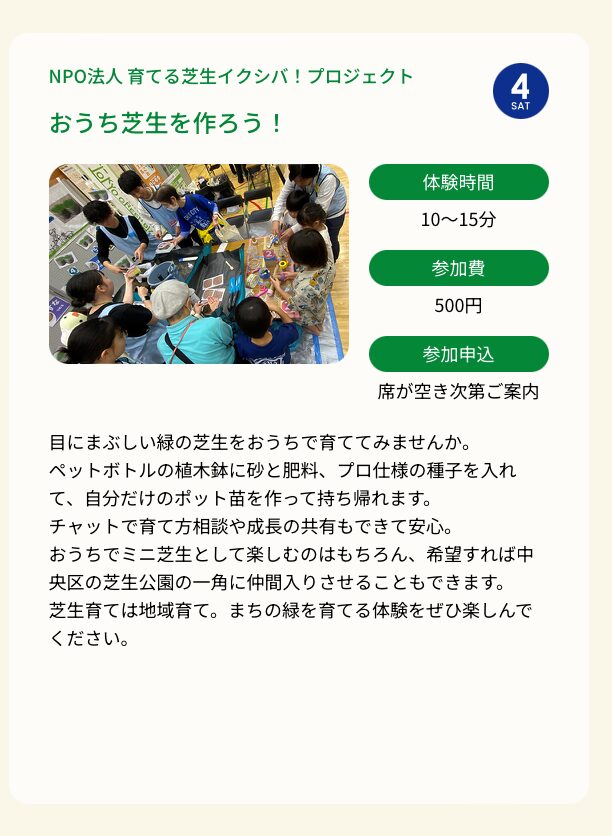 昨年の子どもとためす環境まつりでも出展した『おうち芝生を作ろう!』です。