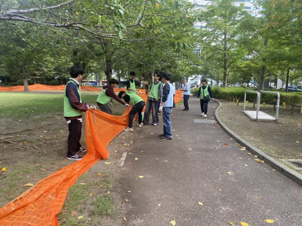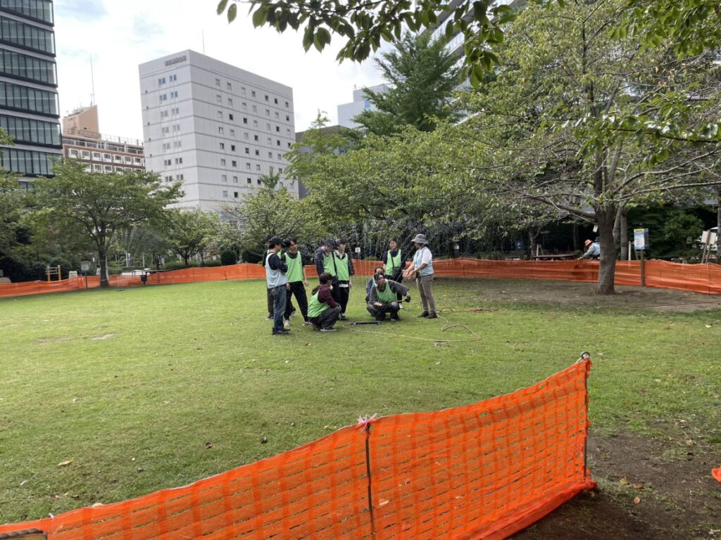 種まきから1週間発芽・柵囲い・農大の学生さんたち 2025.10.12