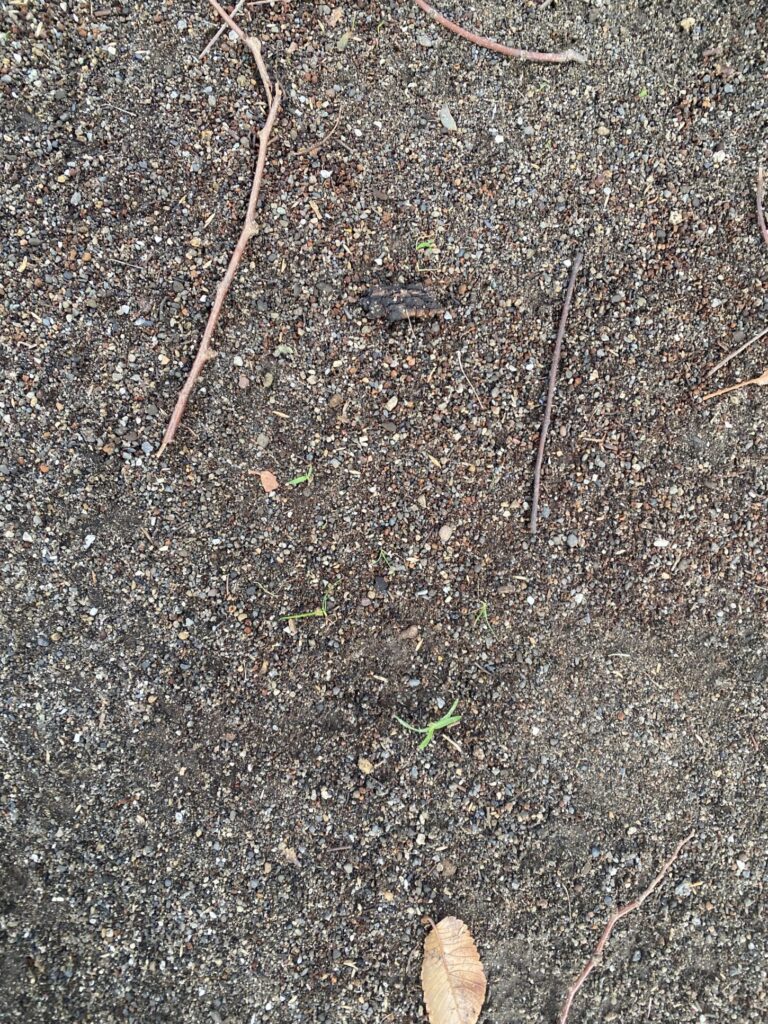 ここでも発芽。夏芝(暖地型芝生)のセレブレーションの上にピョコ!って伸びてきています。