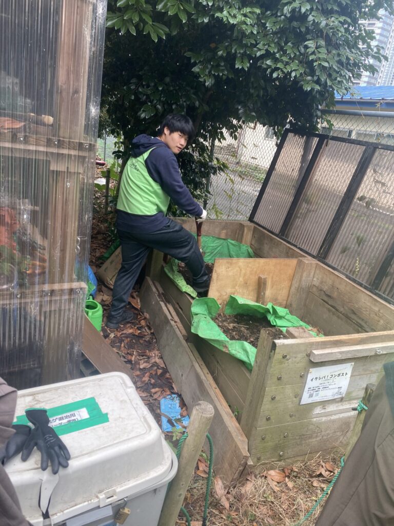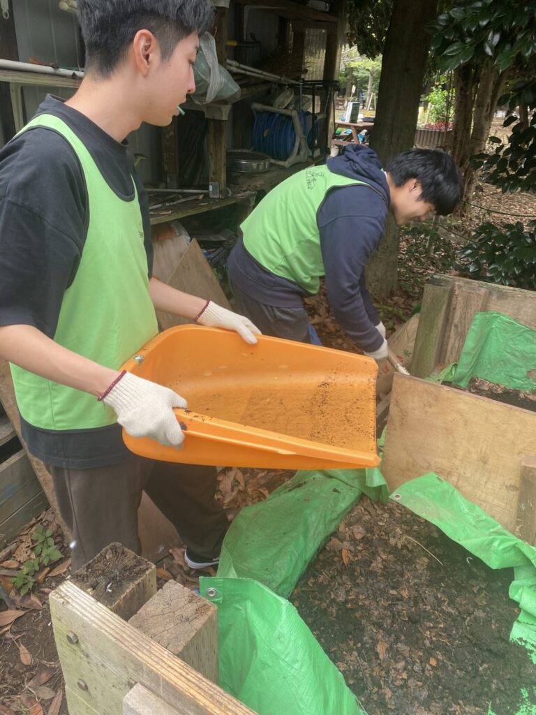 すっかり掻き出されたコンポスト。大将もほっと安心。学生さんたちはさすが農大生。要領良くしてもらえてすぐに終わることができた流石だね、と感心しています。学生さんたちありがとうございました。