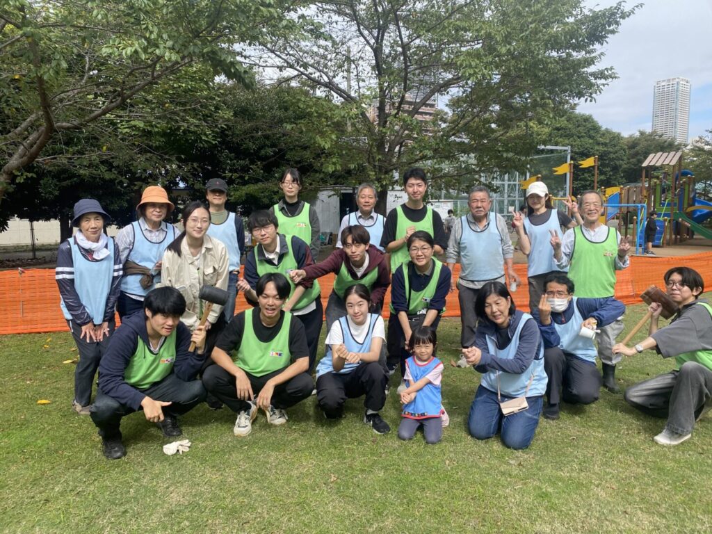 FKFKリーダーが楽しく音頭をとってくれて、ノリノリで杭打ち。
