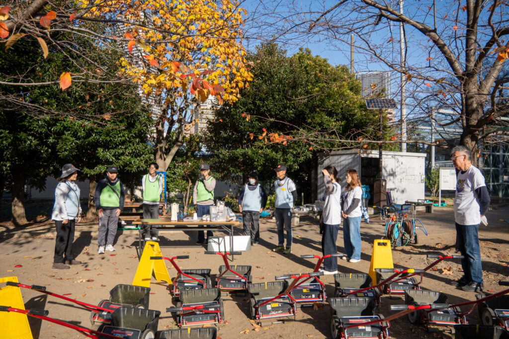 芝刈りする度に必要な作業なので、ぜひ未体験の人は、今日は体験してみようと作業に入ってくださいね。こうやって緩やかにみんなが担当できる作業になって欲しいです。