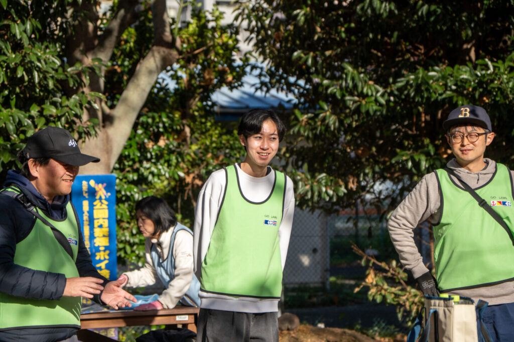 作業もするよ!サポーターさんにはマイビブス(青)を支給しています。
