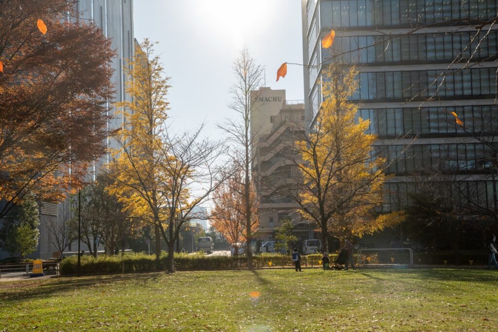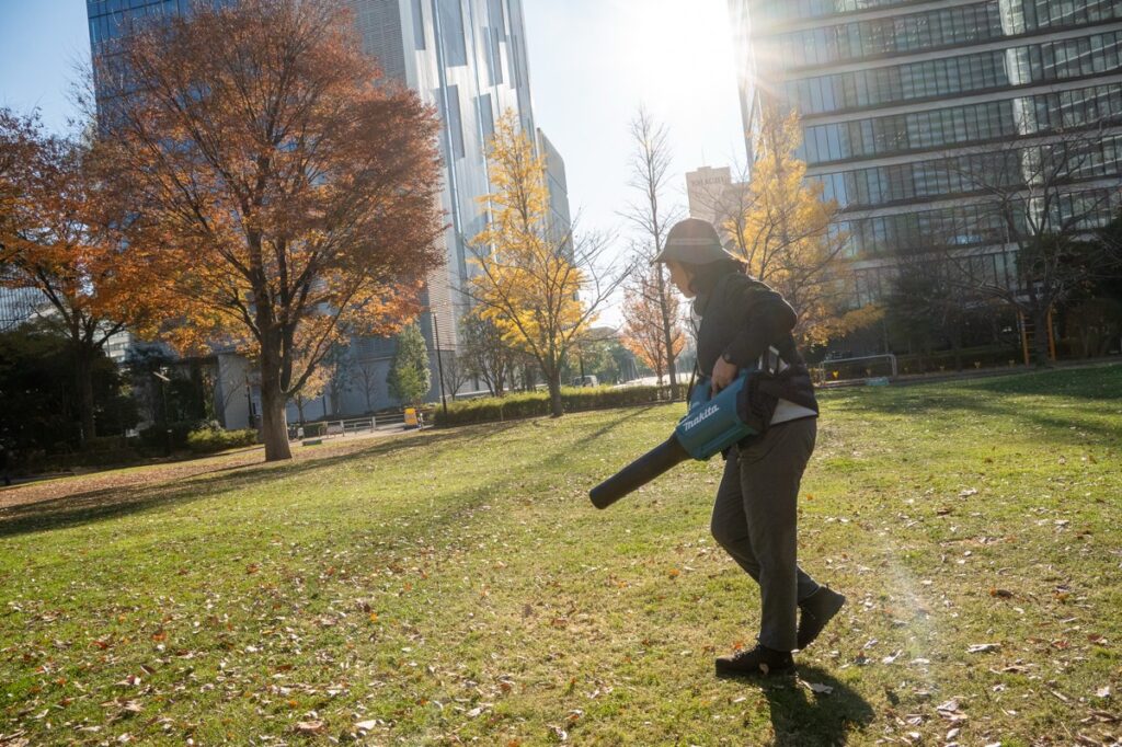 太陽が見れるのはほんの少し、ビルとビルの間を通ります。これは芝生にとって大問題。冬芝のための光がとことん少ない環境です。頑張りたくても頑張れないよね・・・でも頑張って冬芝くんたち!!!!今日の作業は落ち葉集め。葉っぱに直接光が届きますように!