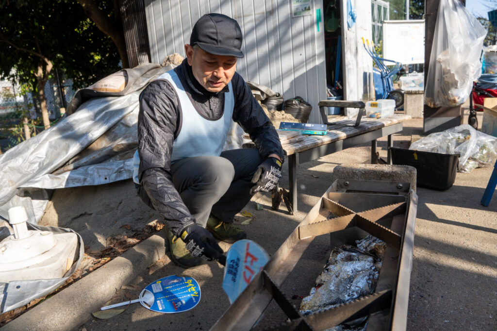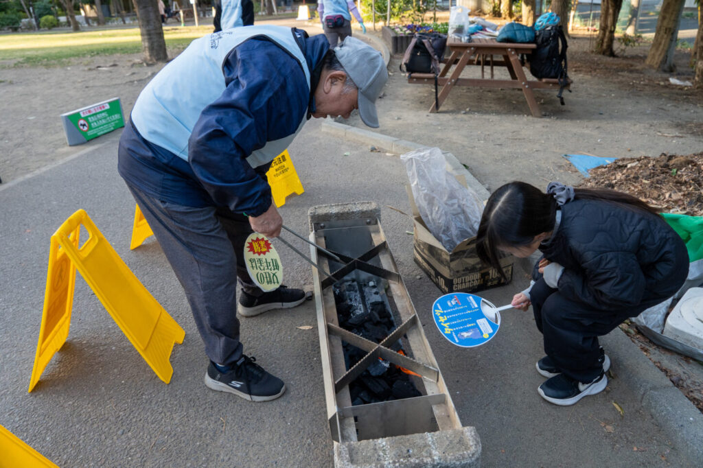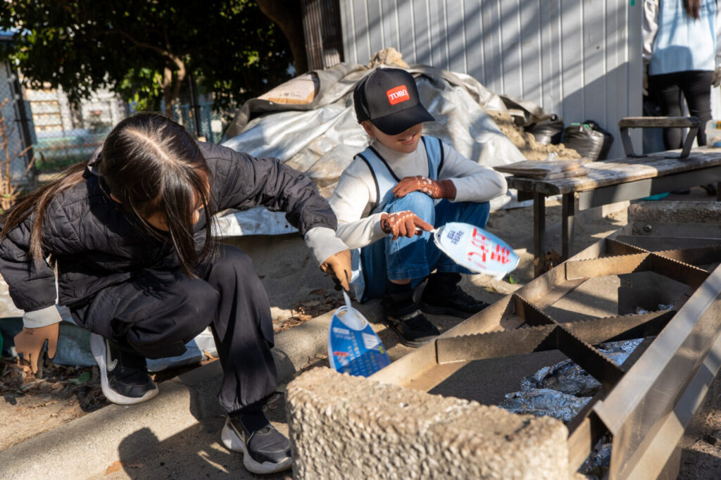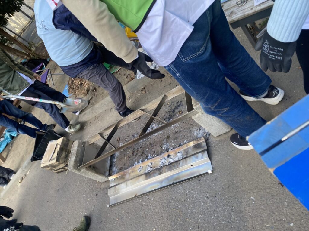 この後、かまどベンチのしまい方を見学