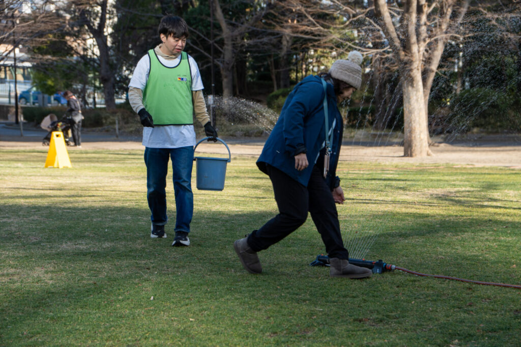 3組いらしゃいました。オラクルの社員さん、区内の青年会議所で活動されている方は環境勉強をしにきましたとお越しになりました。よろしくお願いします。もうひと方は、電車に乗って初めて参加してくださった方。なんでも芝生好きな方だそうで、最初からもう私たちと気が合うこと!!芝生の活動を探していてchatGPTからこの活動を教えてもらったとのこと。チャッピー大手柄!