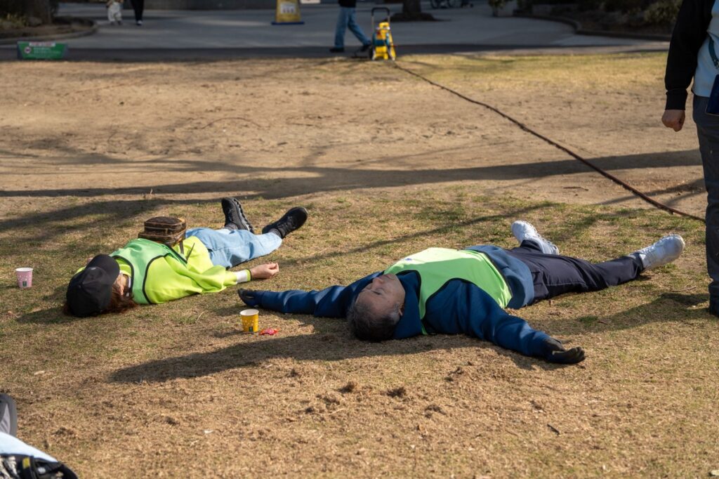 本当は枯れていない芝生で体験してもらいたいんですが・・・それでも気持ちいいものなのです
