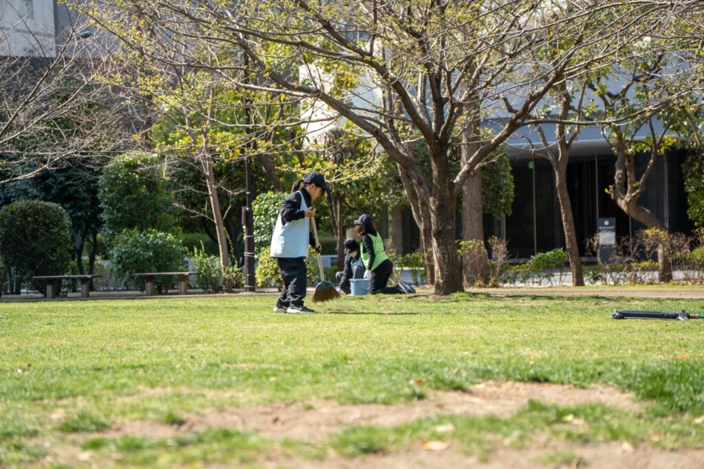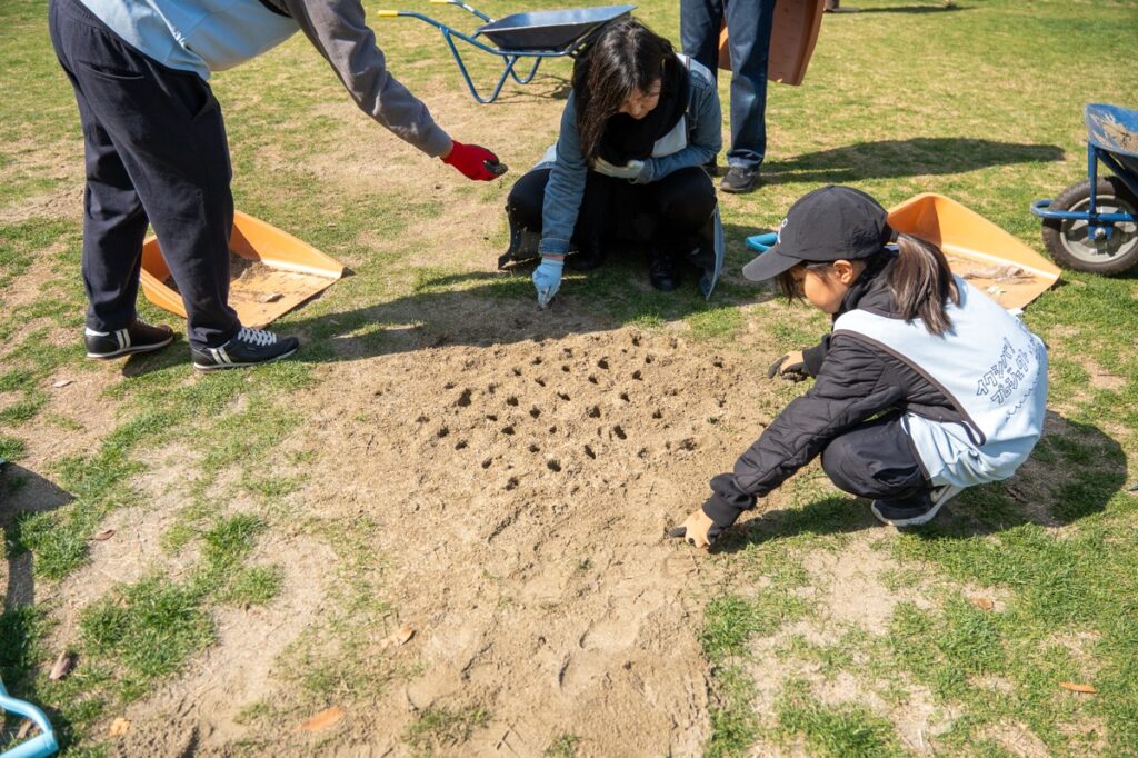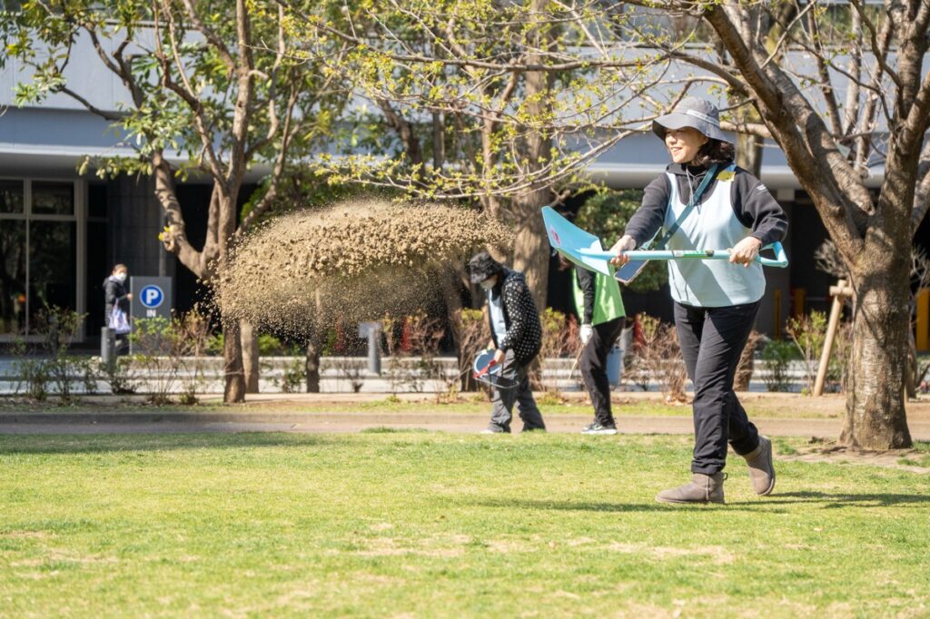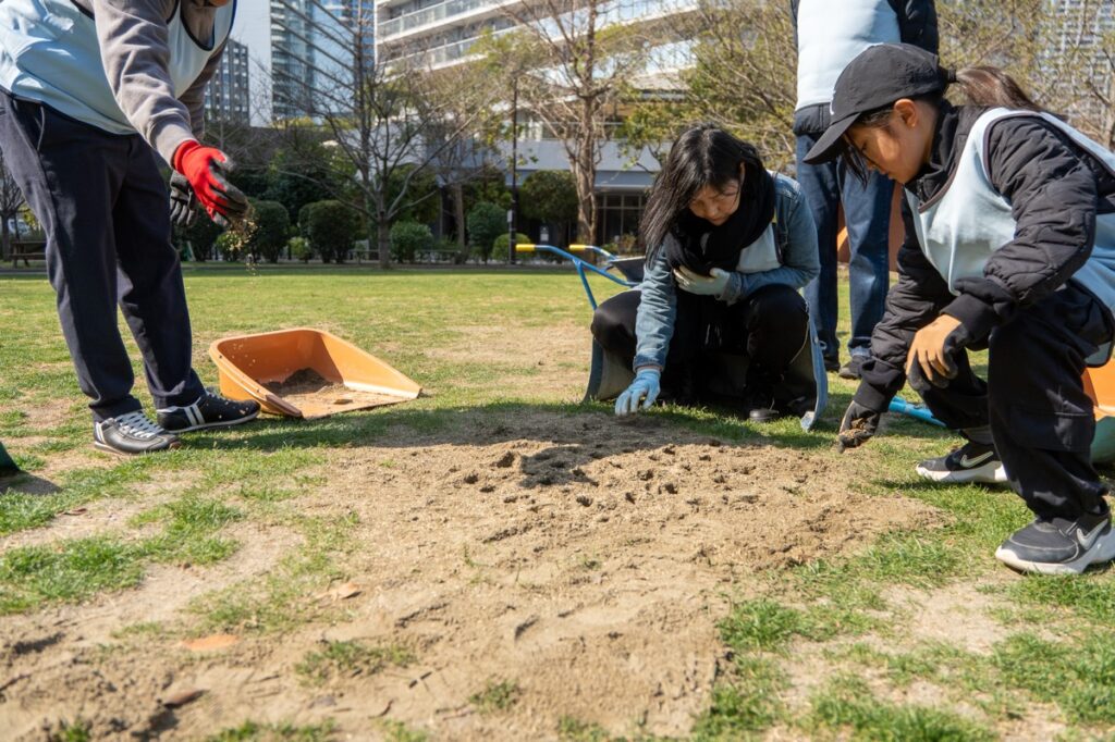 年間800人が参加する芝生育て。