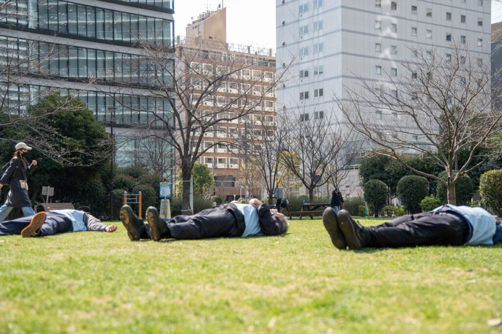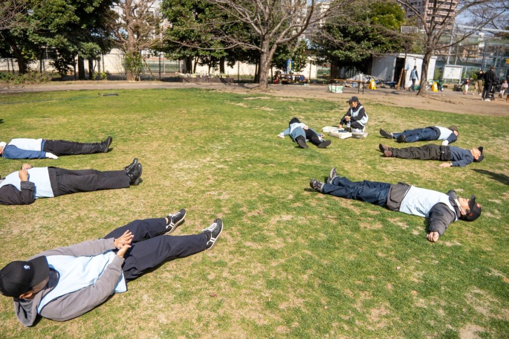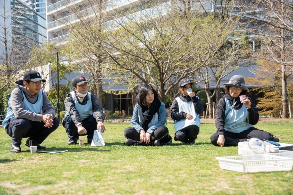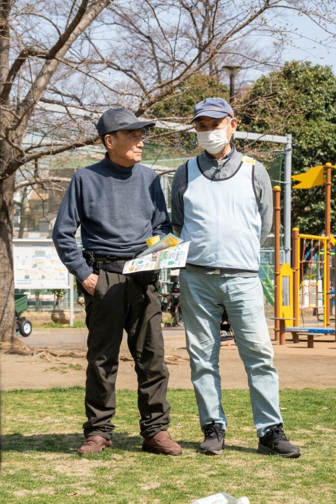一人は、お客さんというよりメンバー。いつも黎明橋公園の芝生を気にして見守ってくれてありがとうございます。