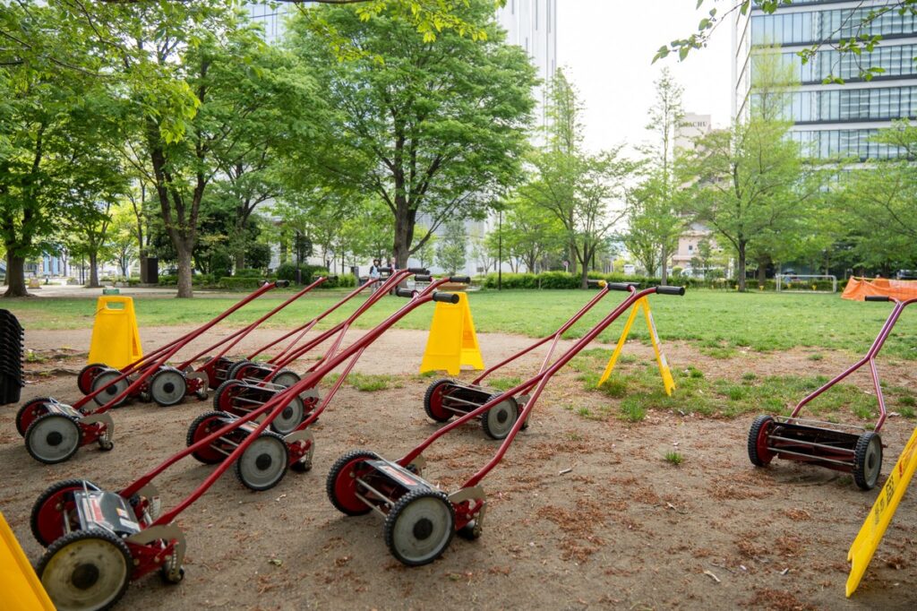 芝刈り機が並ぶと、