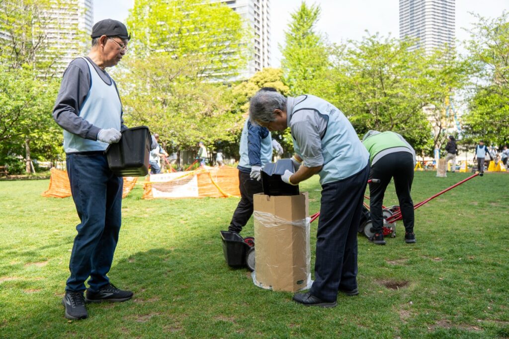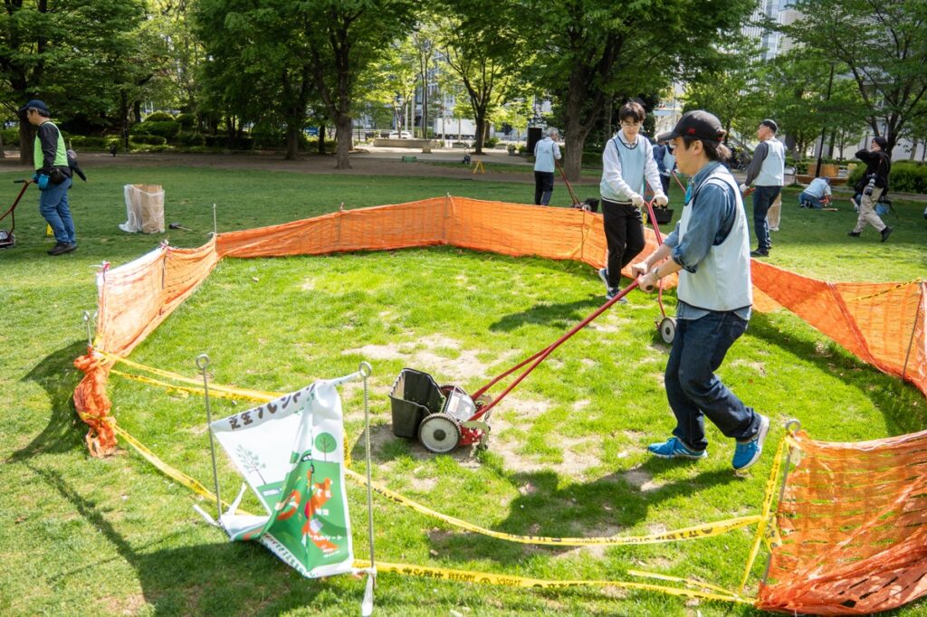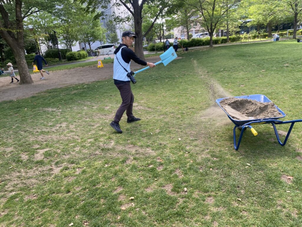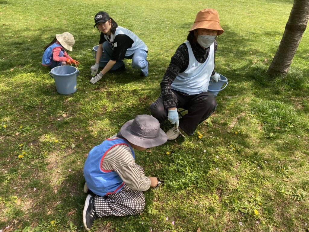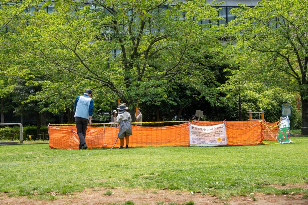 桜から新緑の公園へ、いろんな人が混じる芝生育て(2026.4.19)