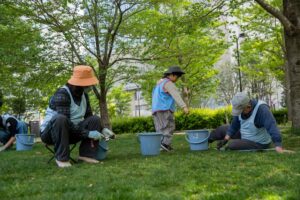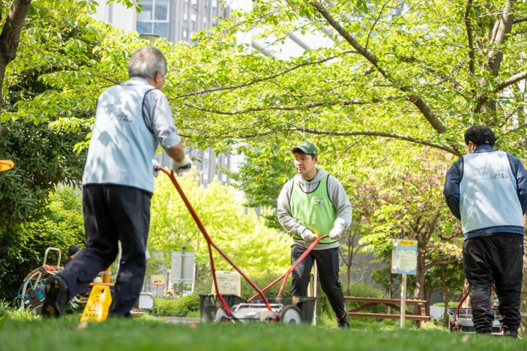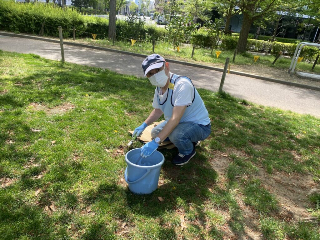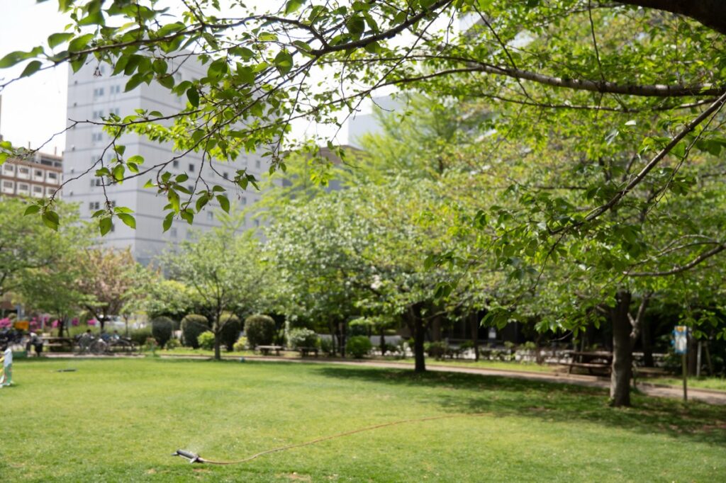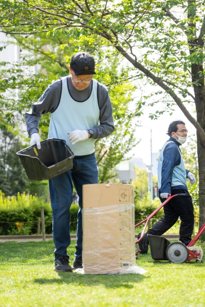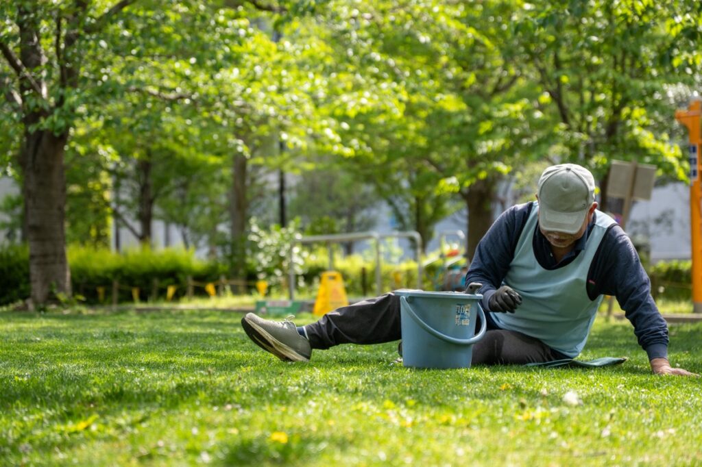 桜から新緑の公園へ、いろんな人が混じる芝生育て(2026.4.19)