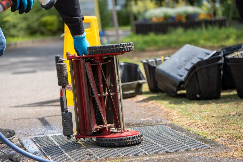 芝刈り機を洗って