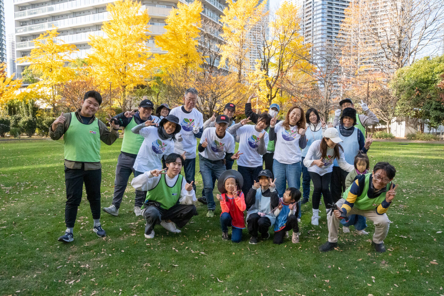 イクシバ!活動では、赤ちゃんがハイハイできる芝生を目指して、みんなで毎週コツコツ手で雑草をとっています。除草剤一切なし!で芝生を育てています。
